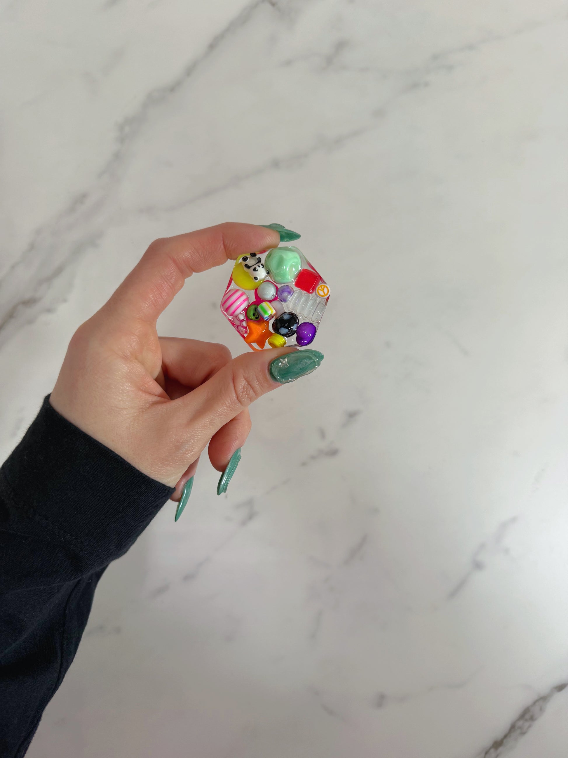 The hexagon works by being a physical item you move between your fingers, distracting anxious, worried, picking hands and giving you a tangible item to concentrate on. Neurodivergent  people tend to repeat a small act with their hands over and over again whilst concentrating, this can be skin picking, skin grazing pinching… literally anything that your body does without you meaning to, our orbs have been designed as a block between your fingertips and your skin, perfectly for repeatedly rubbing and popping in a pocket to take with you where ever you go.
