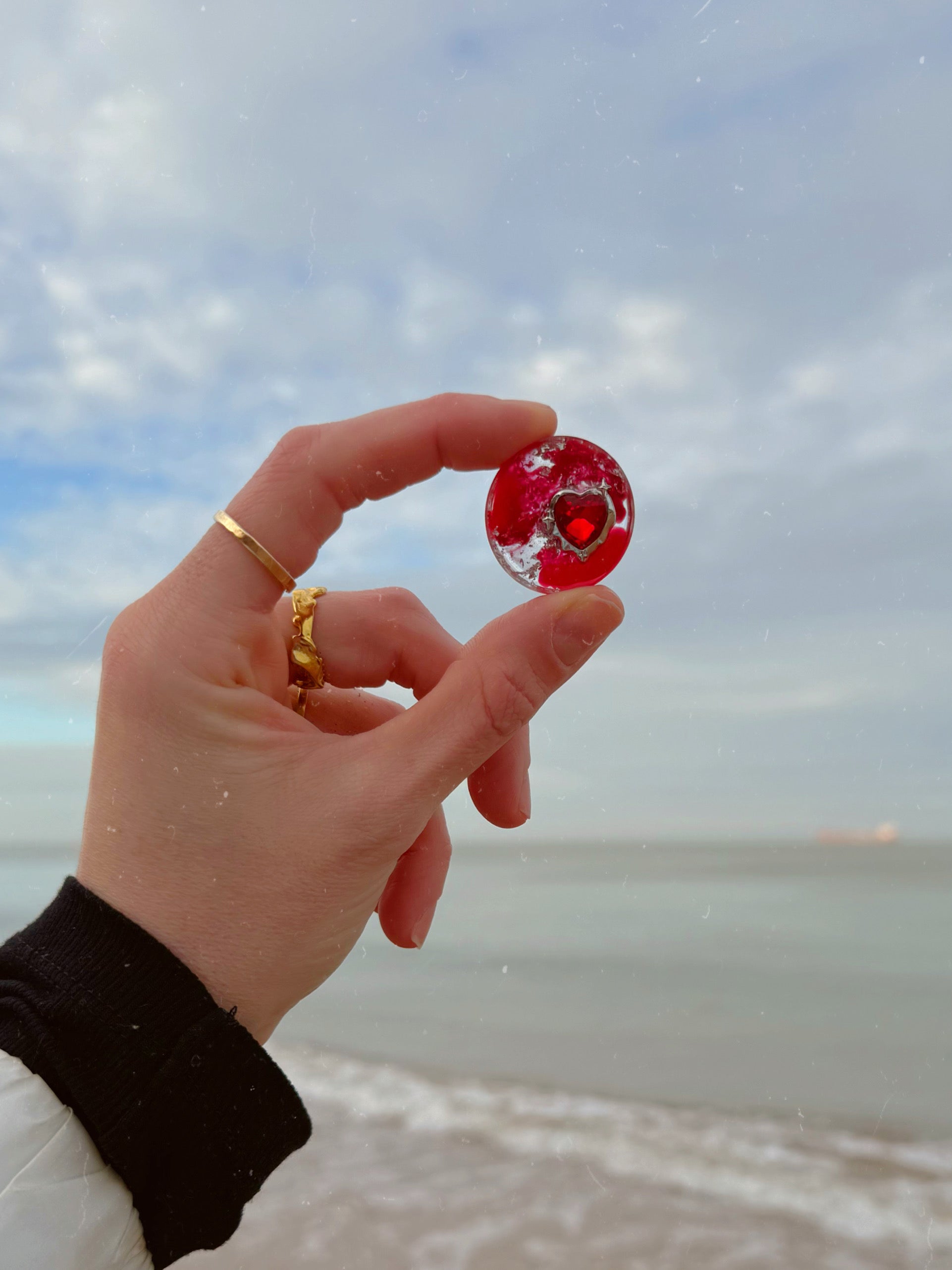 This tiny orb weighing in at a teeny 3 grams, this red and silver base has a small red gem to one side that has a silver frame with a drippin motion towards the bottom.