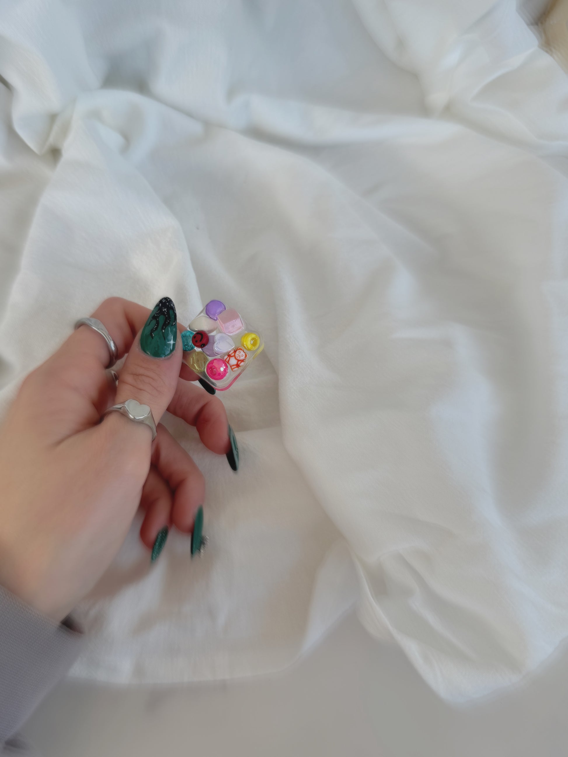 Hello new baby, fresh for November 2025 our mini square is a tiny pocket piece, weve turned this one into a tiny rainbow textured finder, because who doesn’t want a rainbow treasure in their pocket.