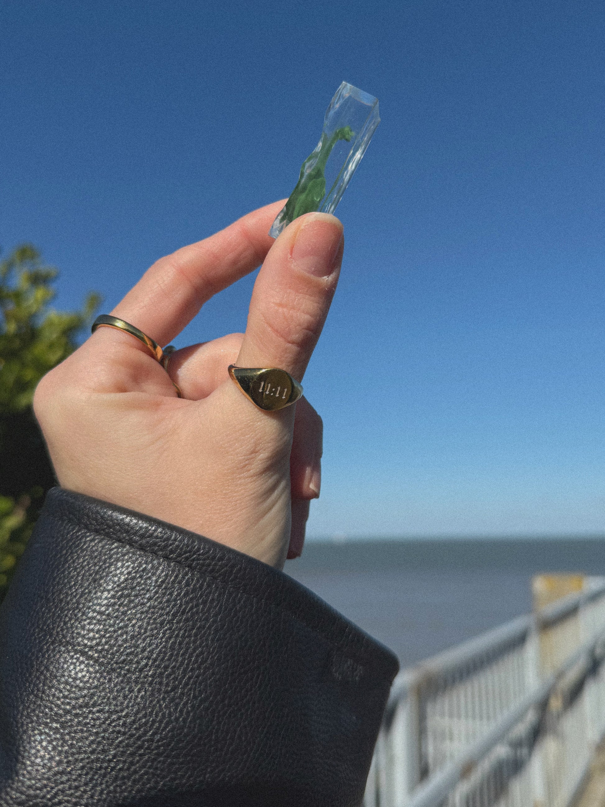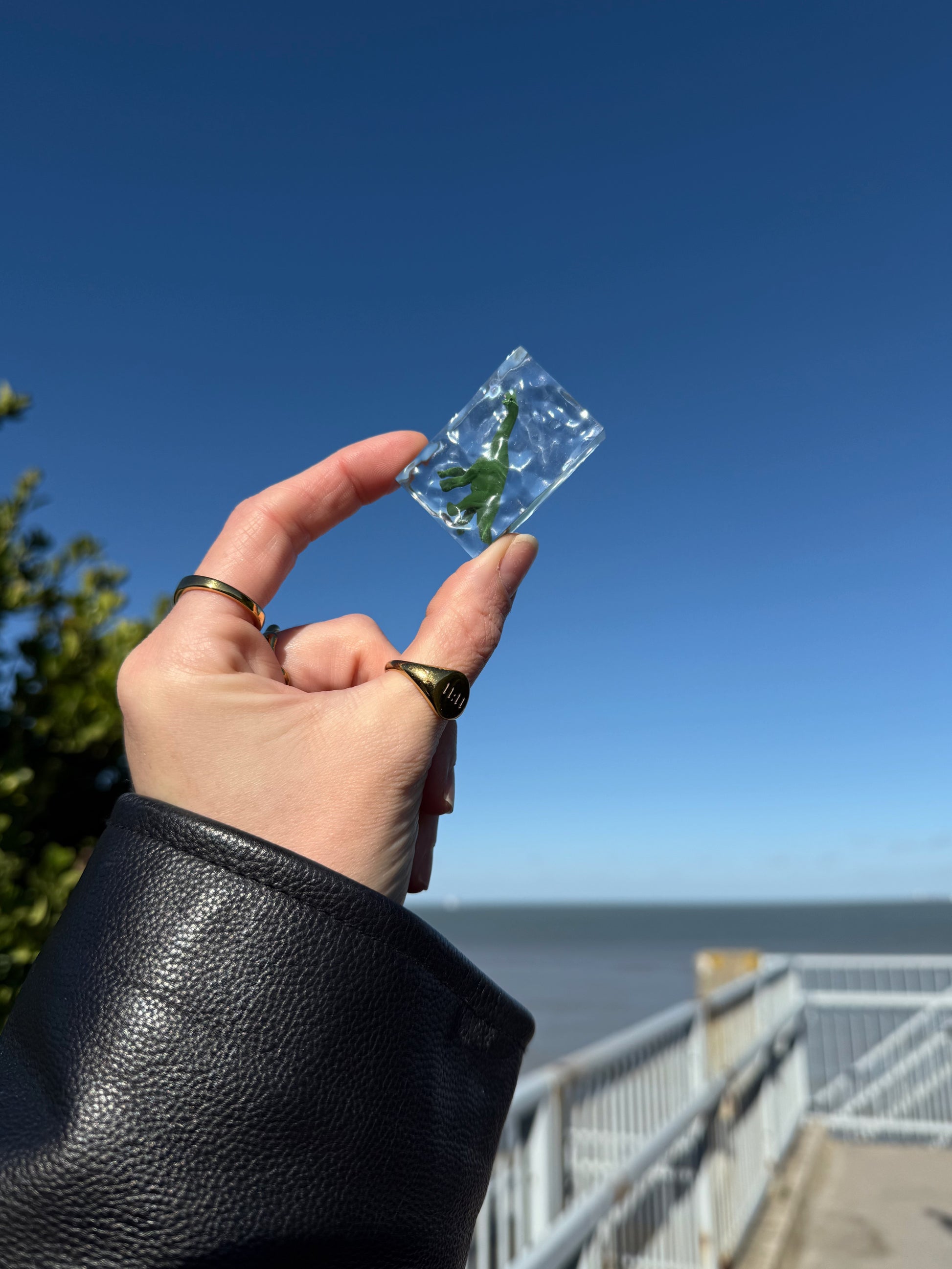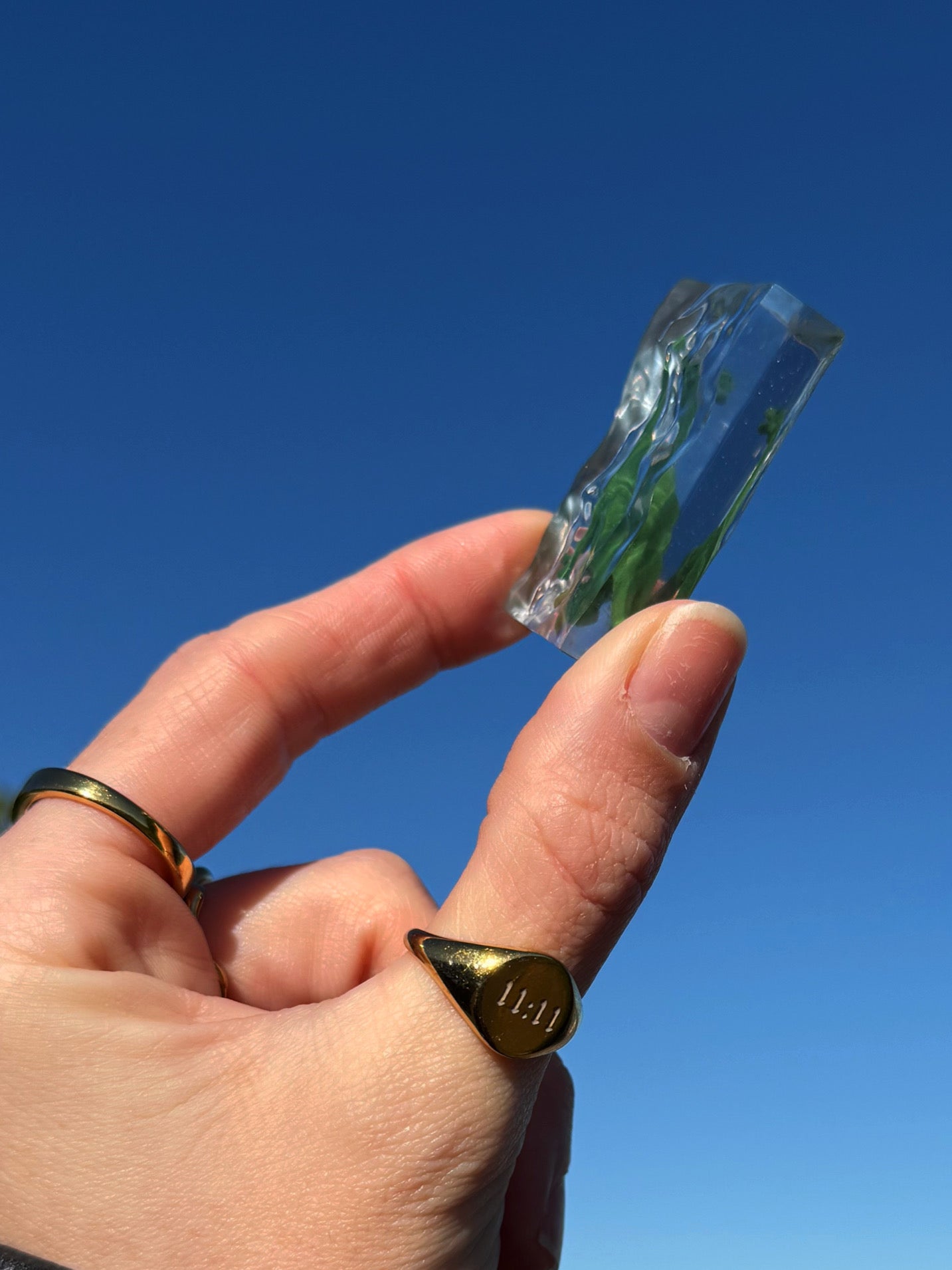 This wave is the first of its kind for jazshouse, designed to look like a specimen, it’s a crystal clear block with a small dinosaur preserved in the middle. It has our classic jazshouse wave on one side and a perfectly smooth side on the other.