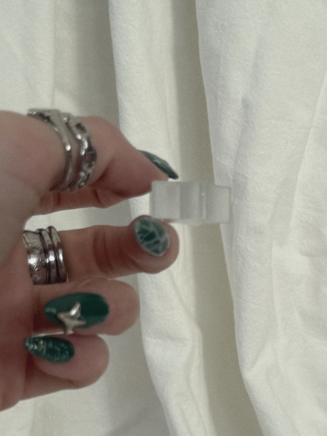 This tiny lucky star is a miniature pocket piece, a tiny thick star that is clear with a holographic silver sparkle through out.
