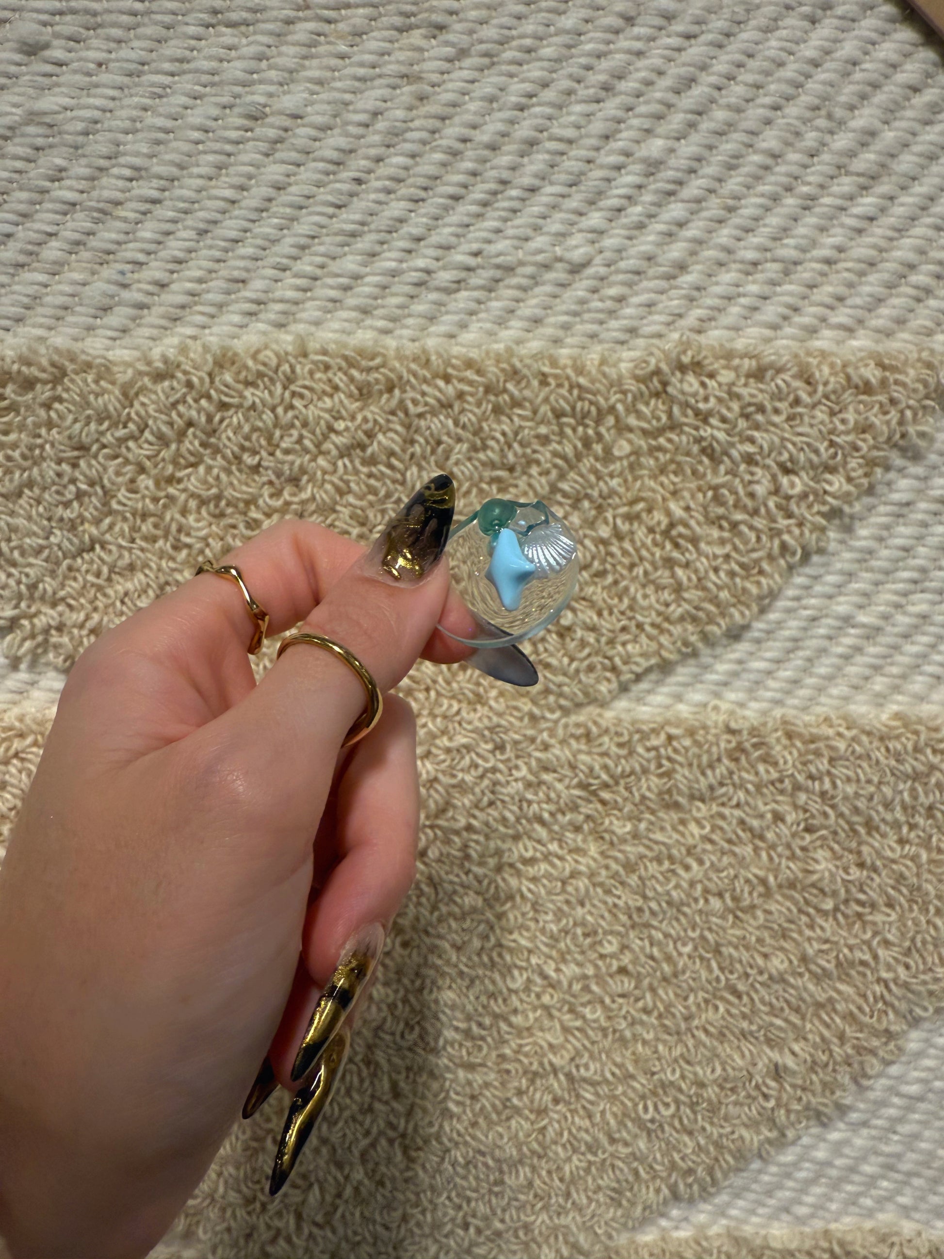 This is one of our smallest ever micro orbs weighing in at 4 g, she’s half textured and half smooth with a subtle sparkle in her clear base, she has just five texture items on top the hero being a baby blue sparkle, designed to look like a mermaid queen from under the ocean, subtle but important.