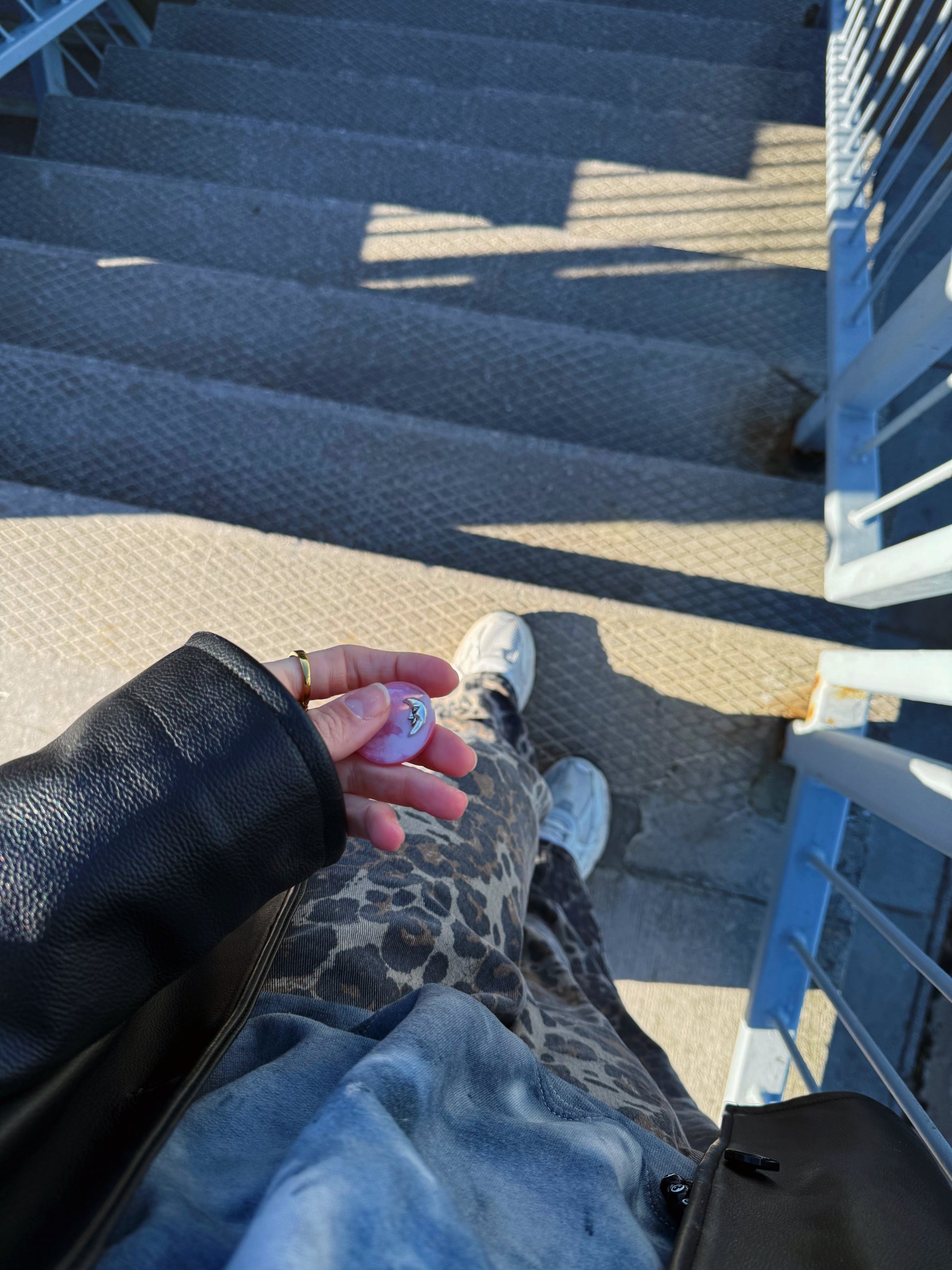 This gorgeous micro orb is one of my personal favourites, set in a marbled base with smoky white, pink and a subtle sparkle, sat to the right on top is a silver metal crescent moon face. The moon is set on a slightly higher layer than the base giving you subtle texture under your fingertips. The smooth resin and the textured moon provide two different temperatures as your thumb circles round the tiny disc.