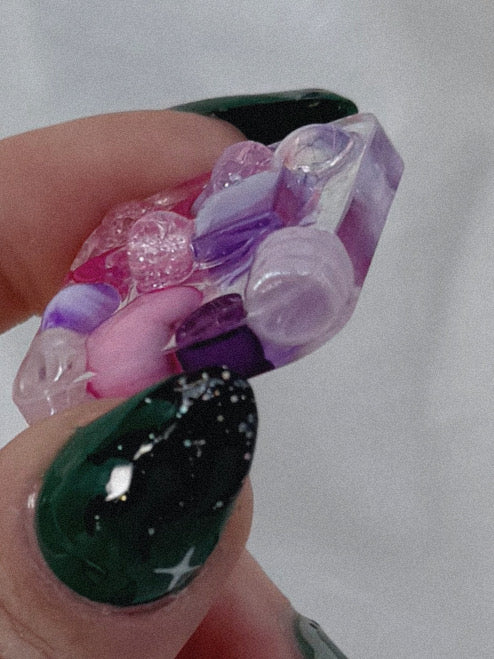 Hello new baby, fresh for November 2025 our mini square is a tiny pocket piece, weve turned this one into a tiny pink textured finder, because who doesn’t want pink and purple treasure in their pocket.