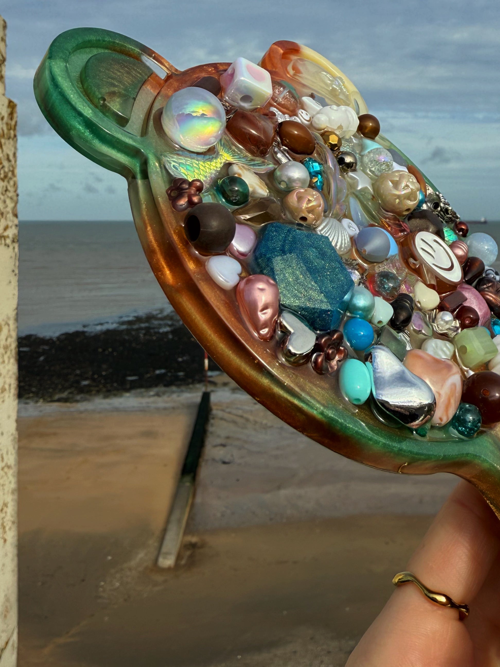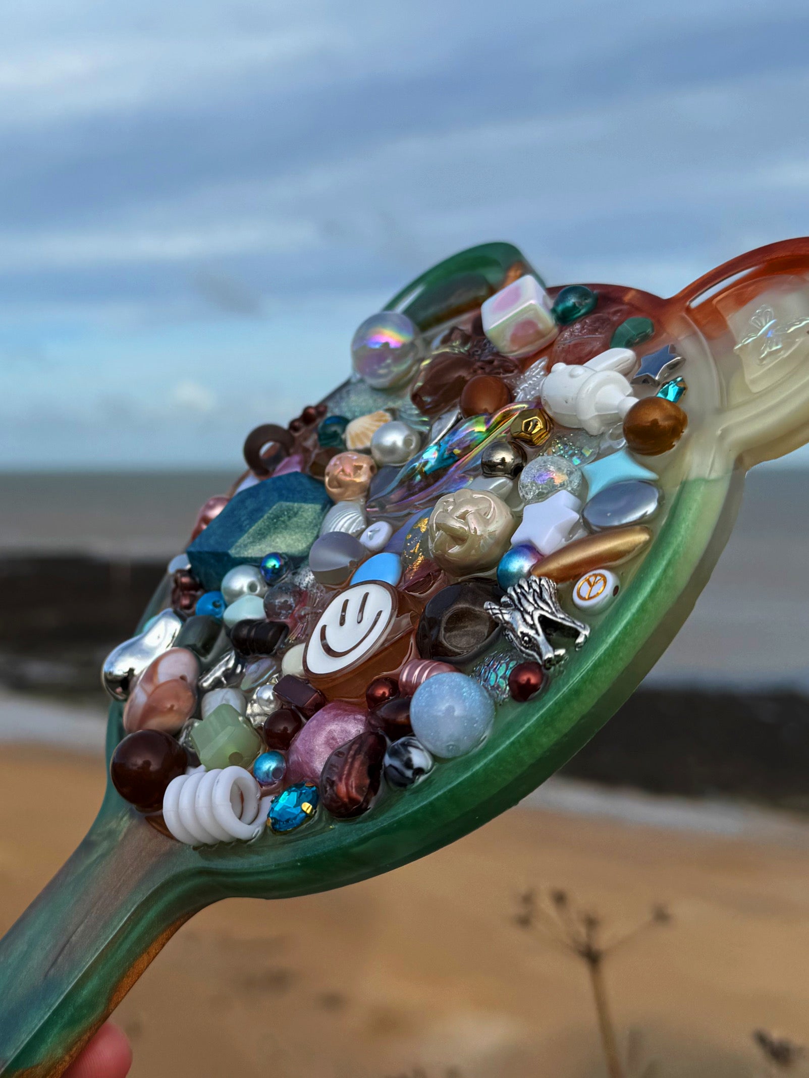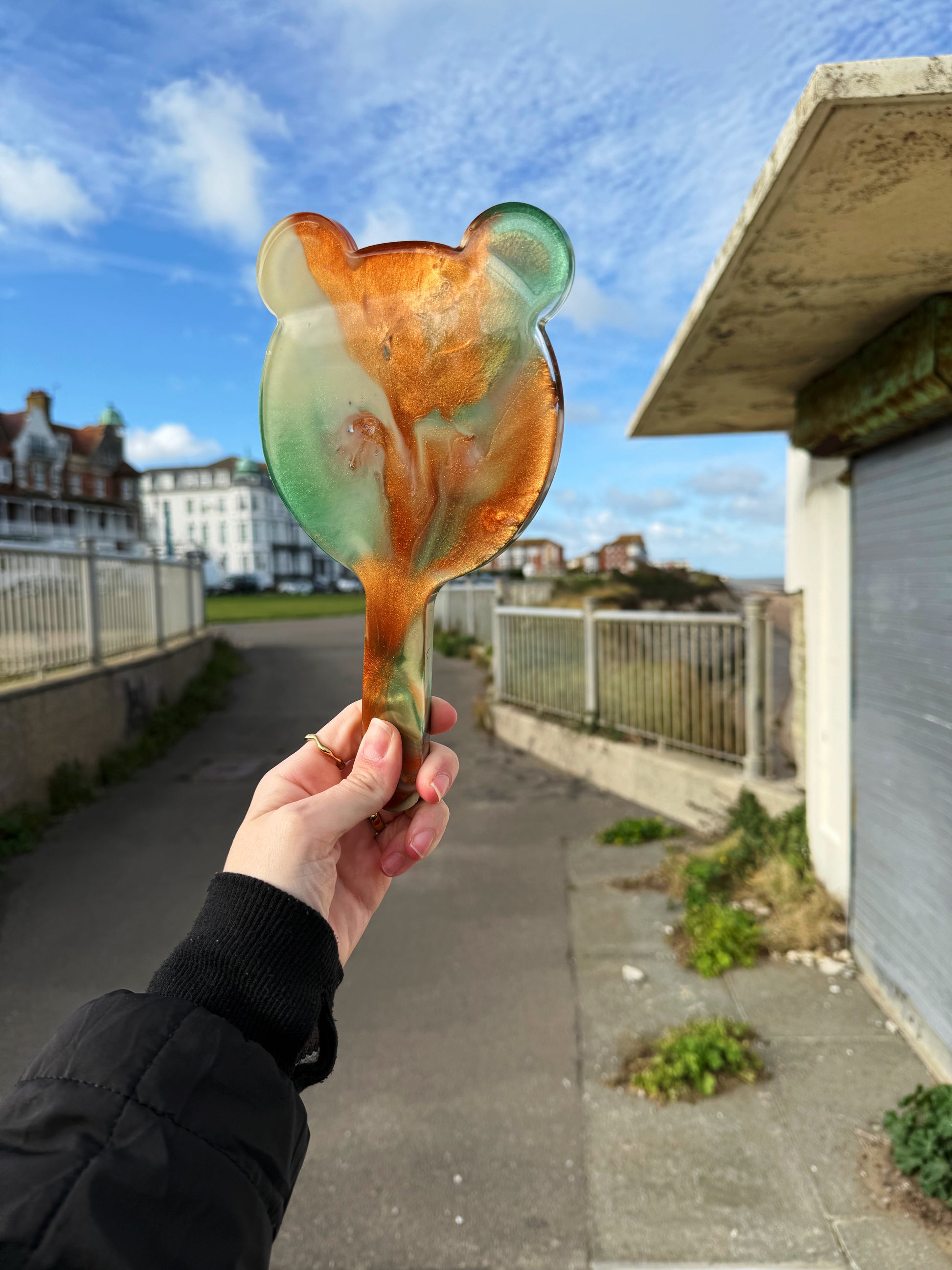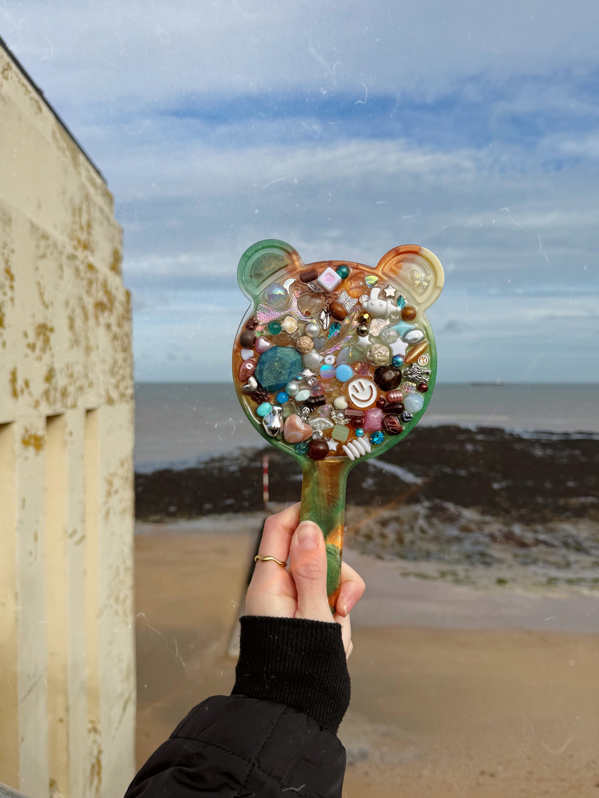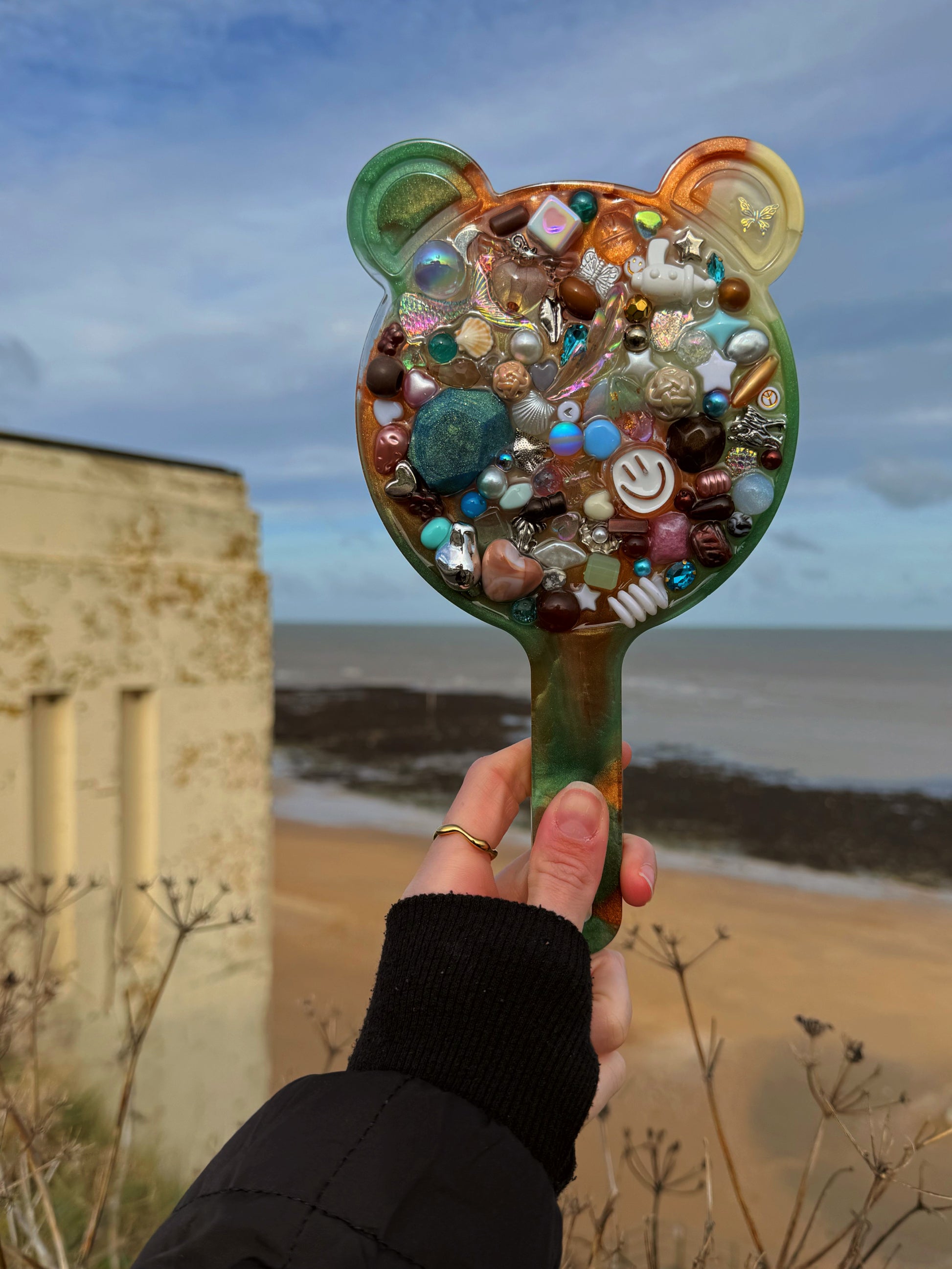 Our jazshouse bear mirrrs are one of our biggest textured tools, a party piece for your shelf or unit, or a group tool this isn’t something that can be easily popped in a bag like our other items. With a coloured plate like base with a small rim around the outside keeping hundreds of different textured items ontop.