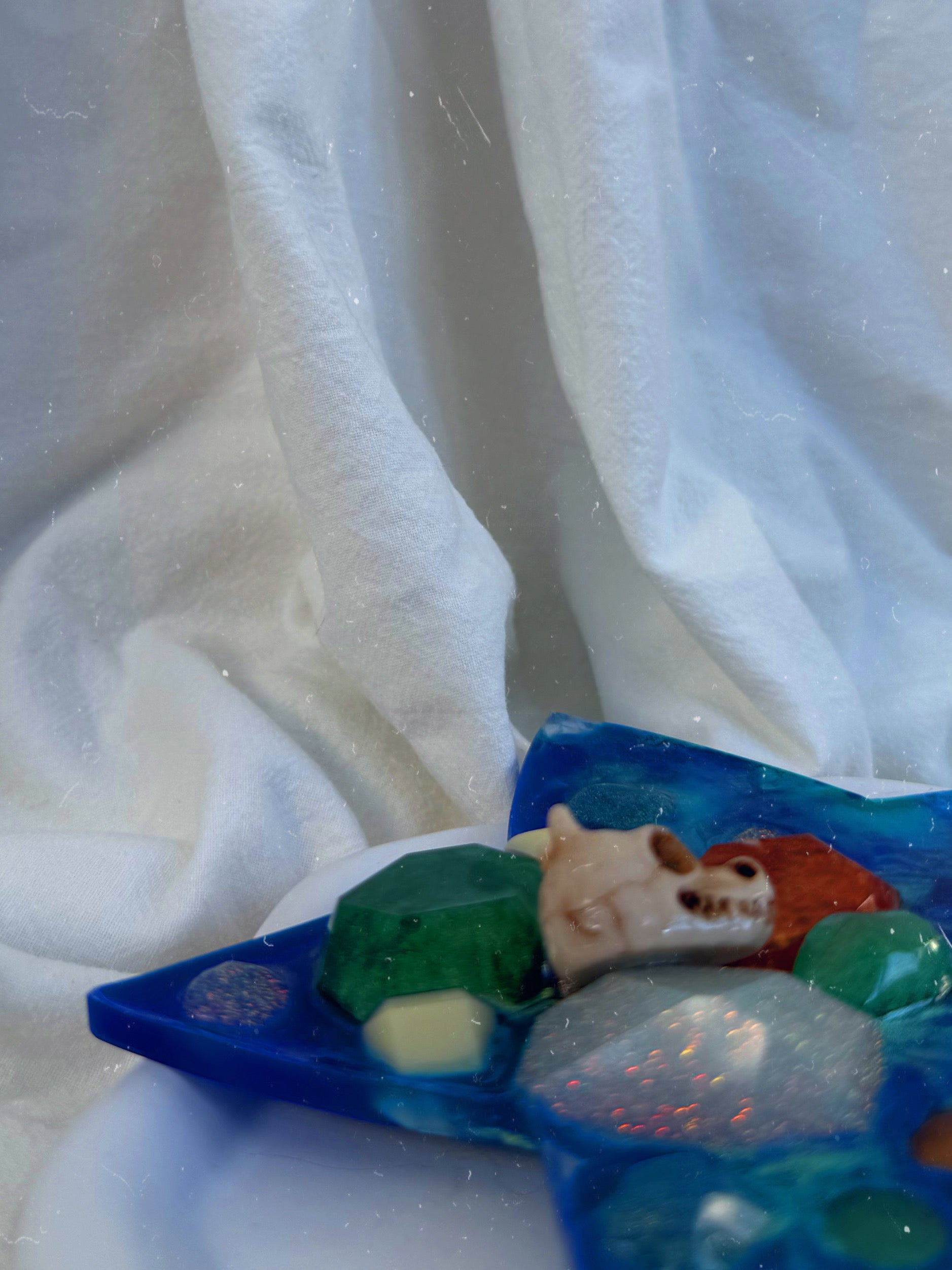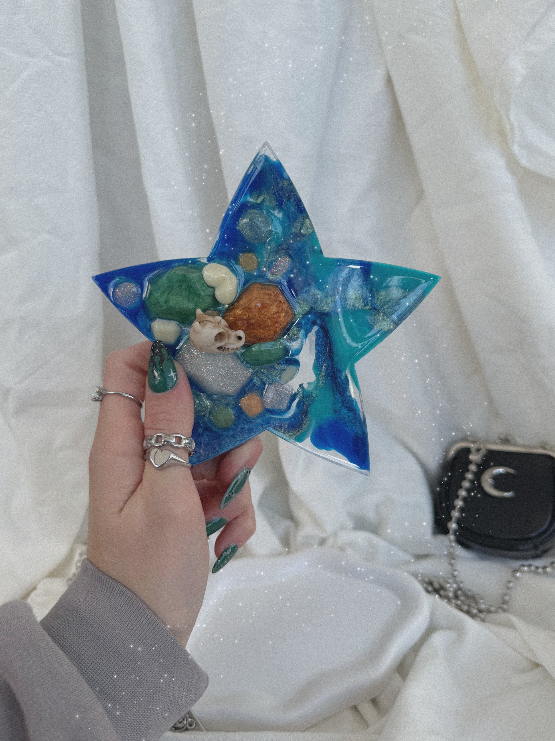 Our huge star tinkers are a large textured tool, too big for one hand, the gorgeous mix of negative smooth space coupled with a one layered textured patch of gems topped with a dragon skull - just like a hoard in a dragons cave - works wonders for a hand that wants to make circle shapes over multiple textures.