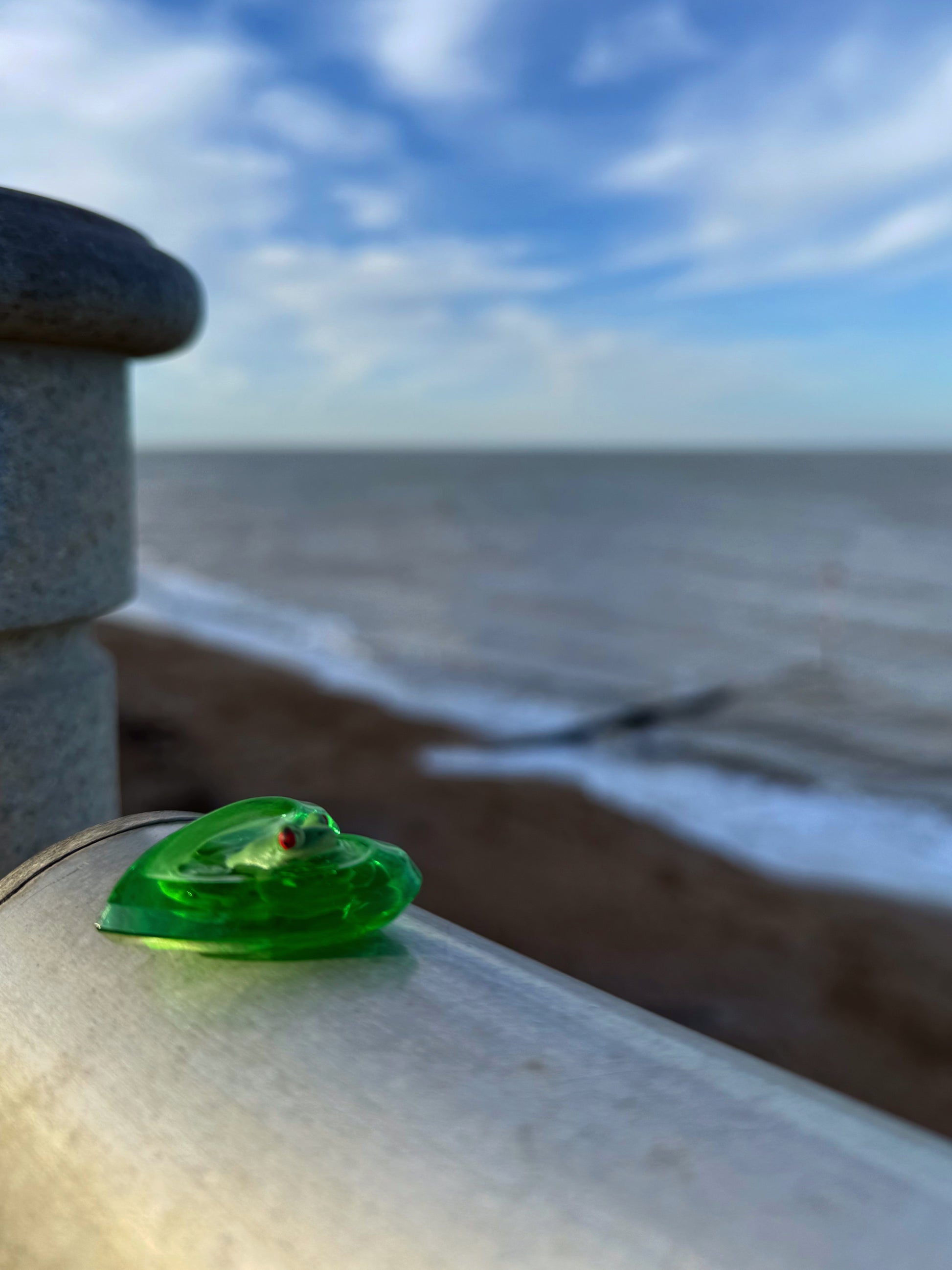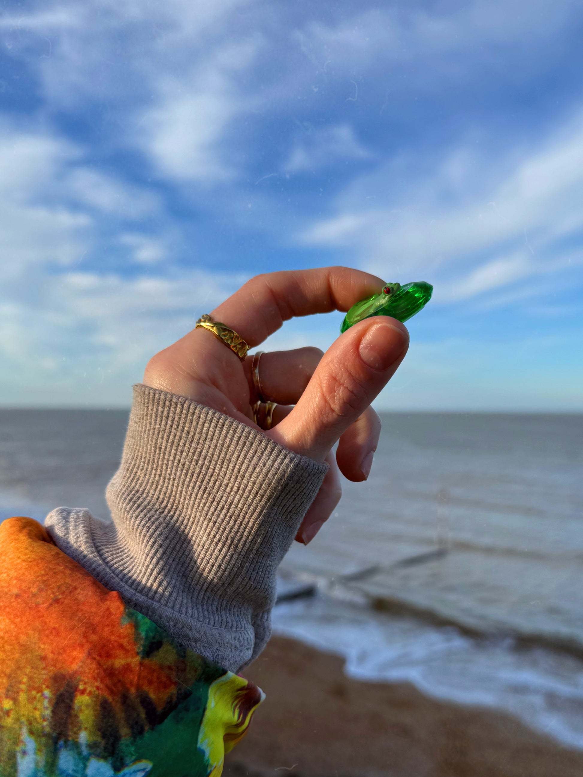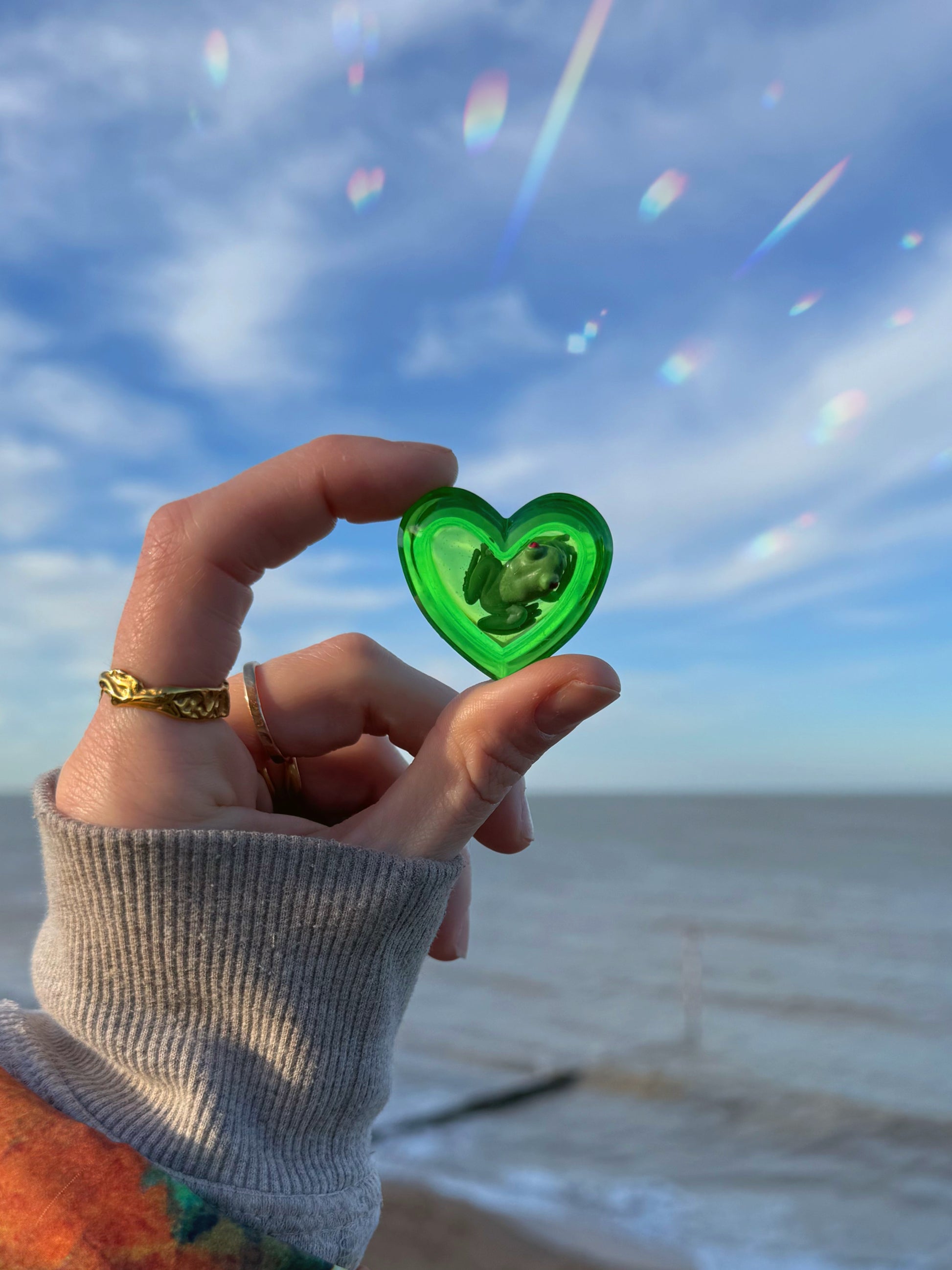 This limited edition giant green gem has a rubber frog inside, our nod to kissing a few frogs before you find your prince … or princess.