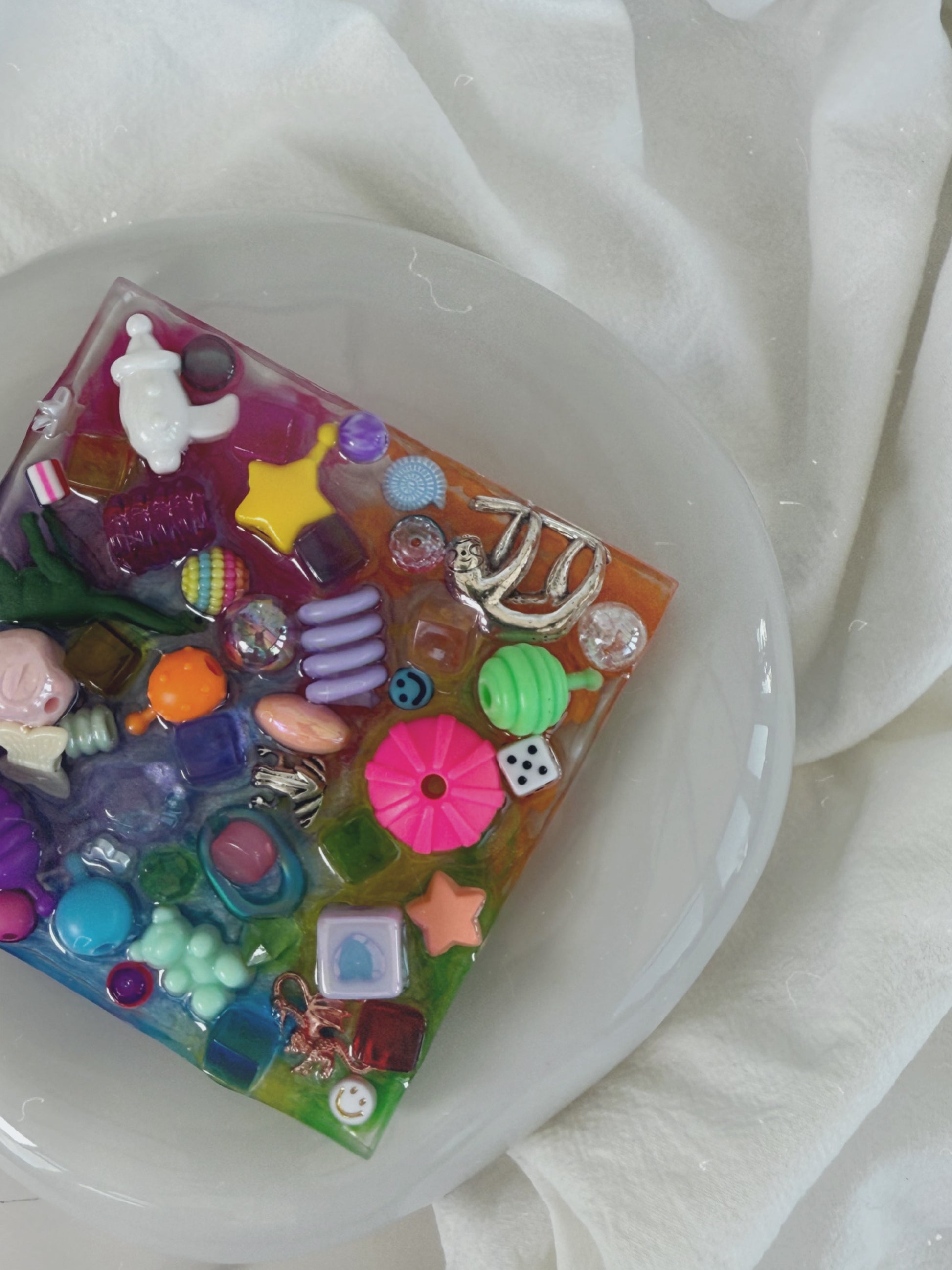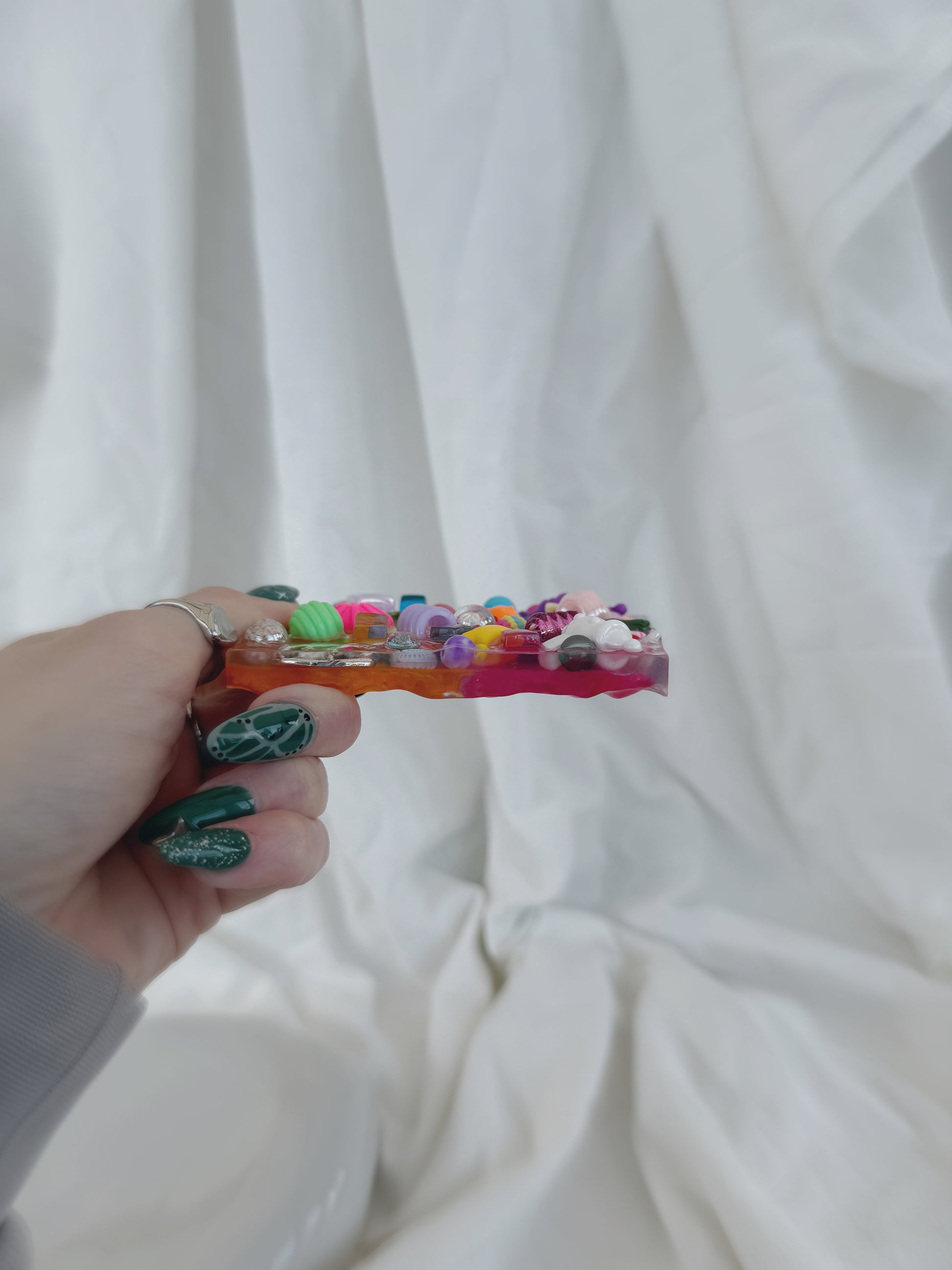 With a smooth and bumpy 3D wave pattern on one side with our classic jazshouse full of rainbow treasure texture on top.
