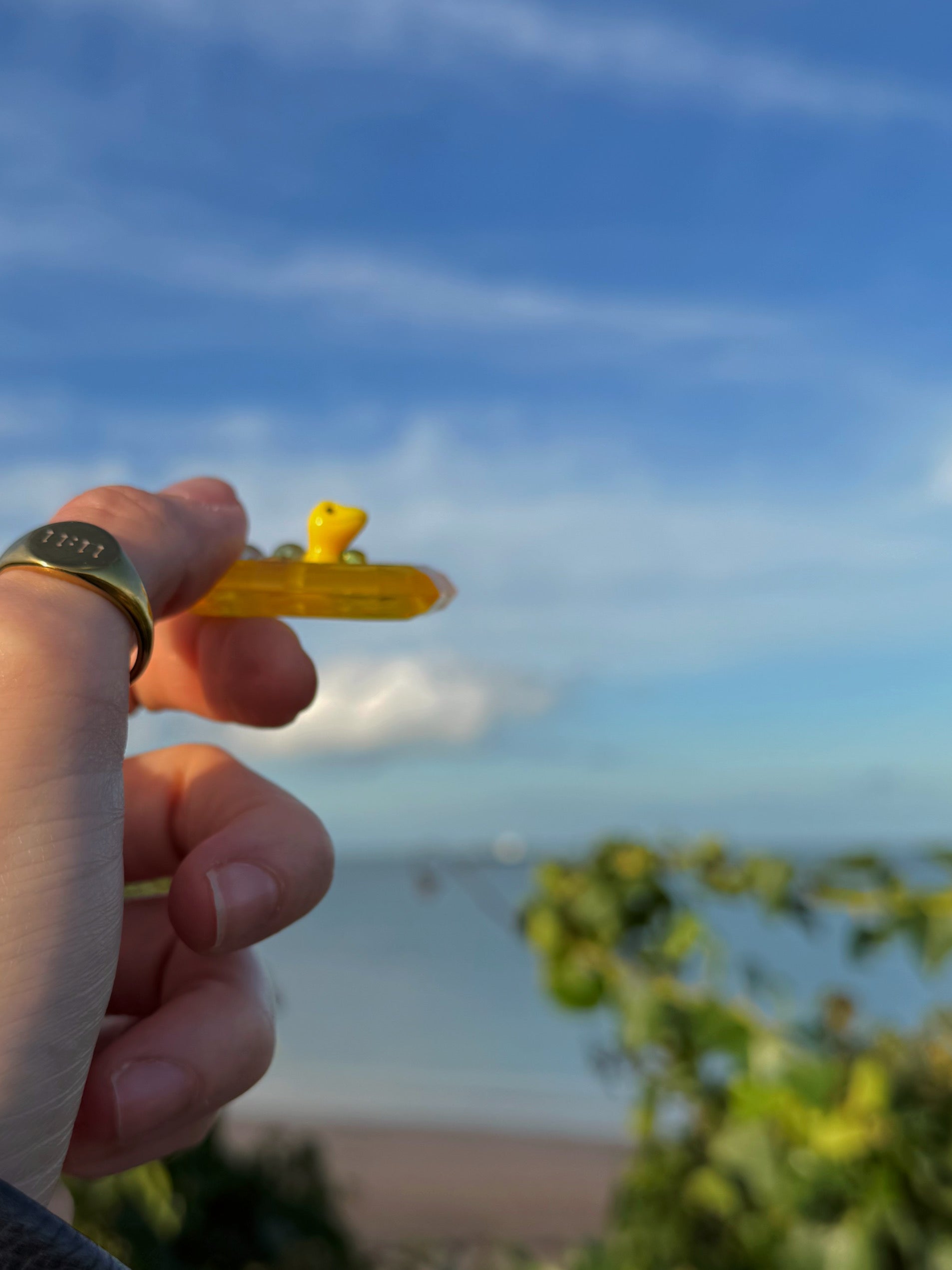 This limited edition giant yellow gem has a yellow lizard inside surrounded by little yellow pieces.